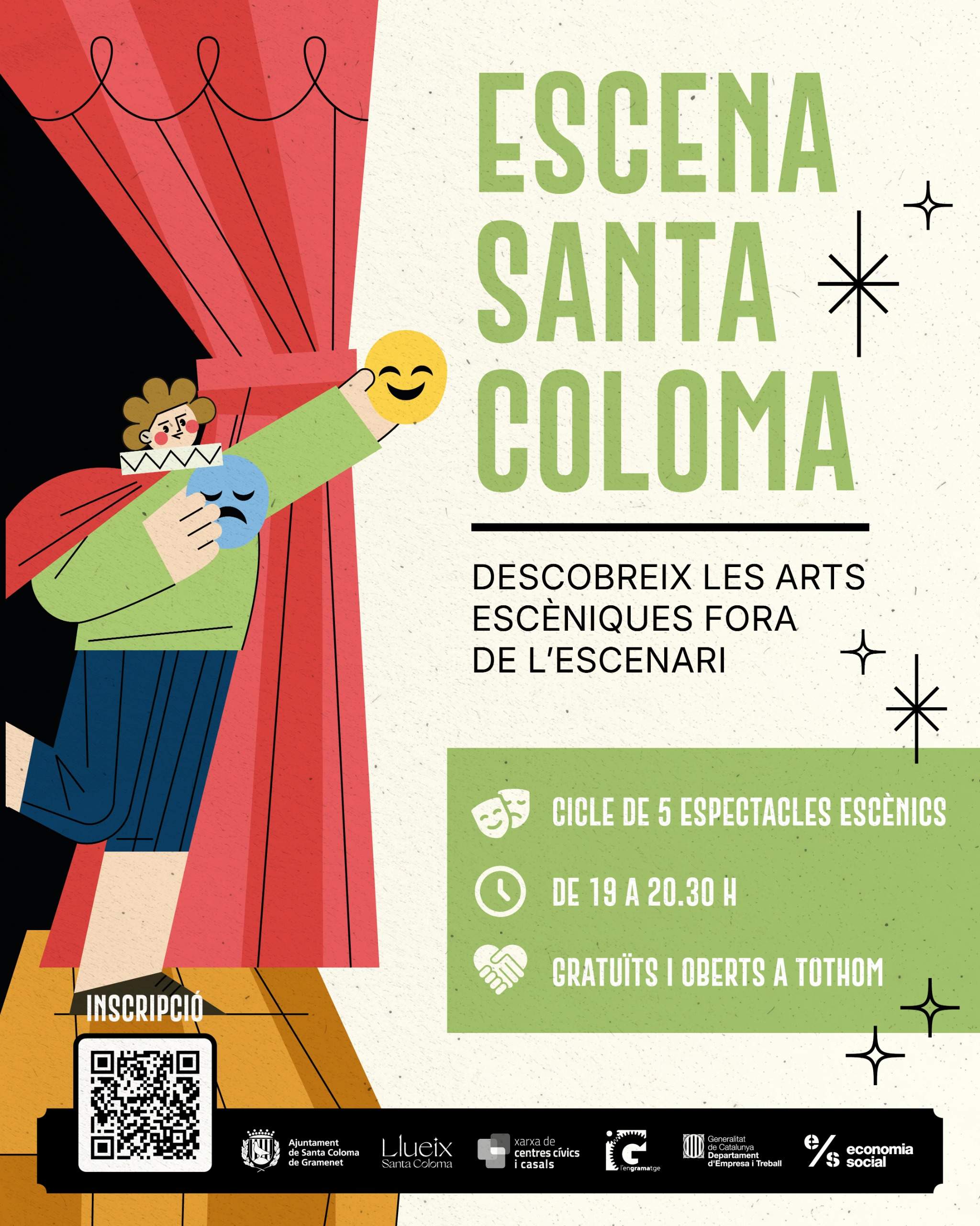 ESCENA Santa Coloma és una proposta de 5 espectacles escènics itinerants professionals que té la voluntat d'apropar les arts escèniques als barris de Fondo, Singuerlín, Llatí, Can Mariner i Riu.