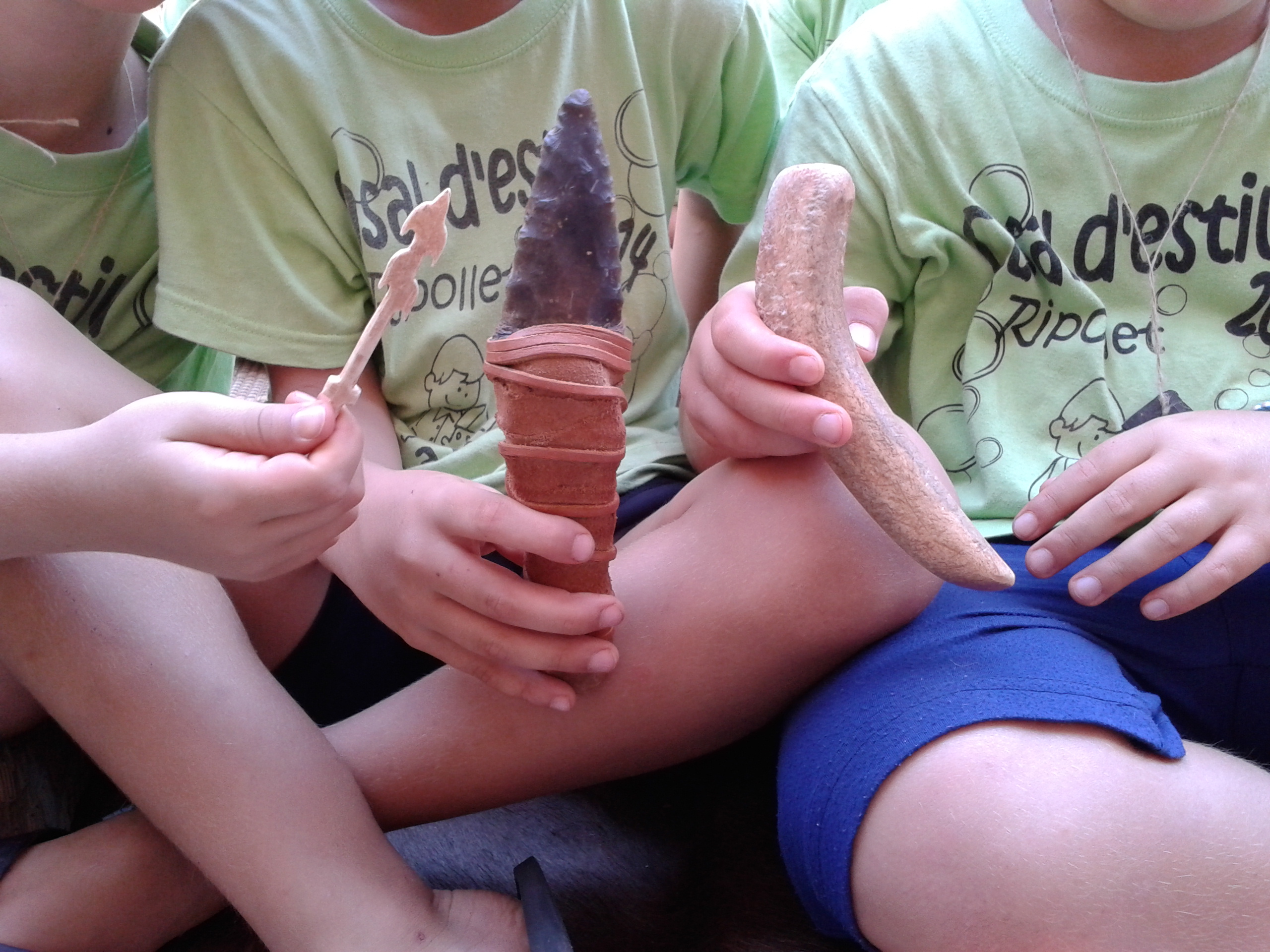 - Paleolític: caçarem amb arc i fletxes, manipularem diferents eines de sílex, os i banya i farem una pintura rupestre sobre la paret d'una cova.